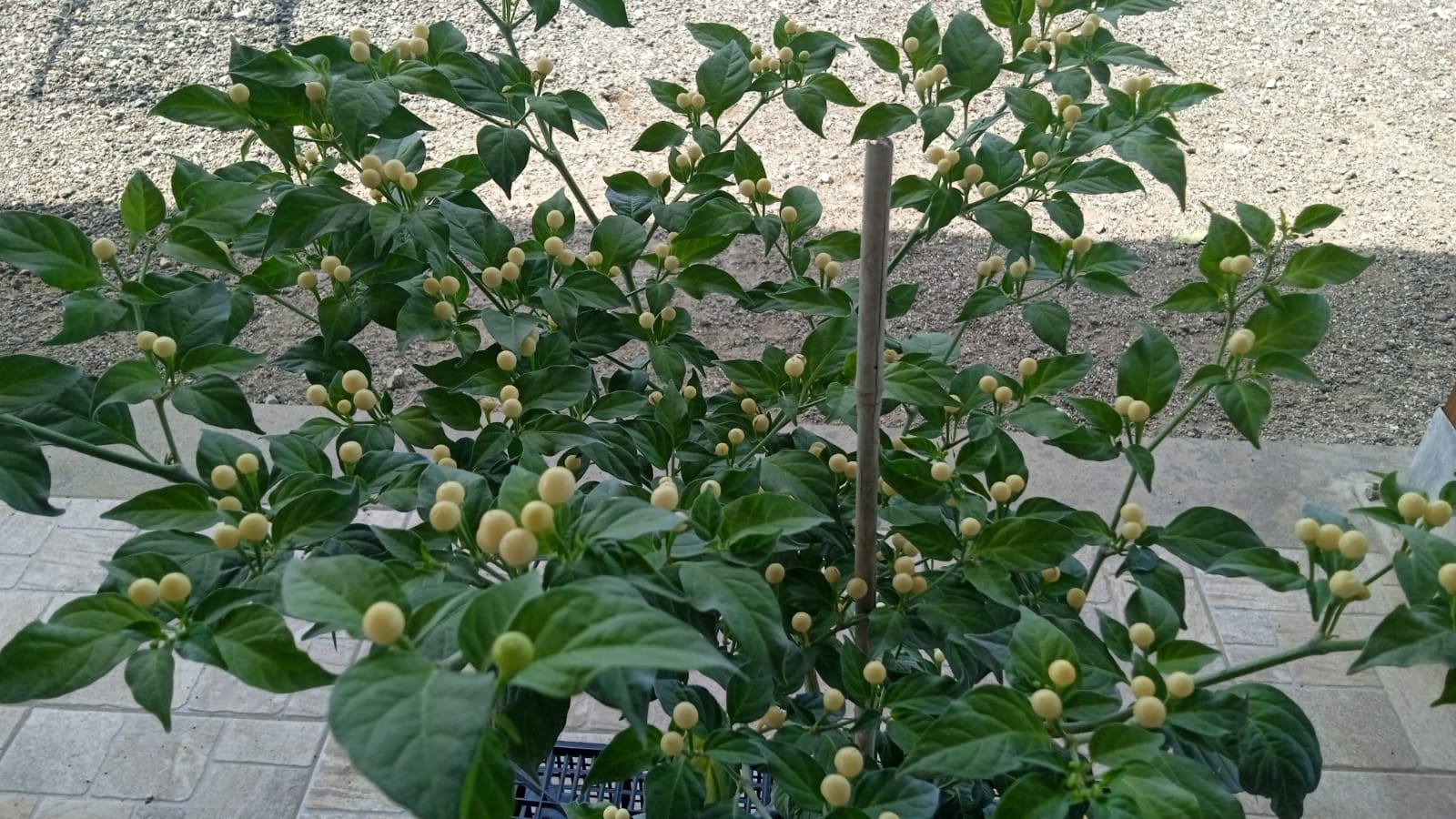 Pianta arbustiva e prolifica, tradotta dal portoghese “occhio di pesce”, questa è una varietà rarissima, produce piccoli frutti di forma tondeggiante delle dimensioni di un pisello, hanno una colorazione dal verde chiaro al crema quasi bianco, dal sapore fruttato con sentore di agrumi, utilizzati freschi oppure per la produzione di salse e sughi.
